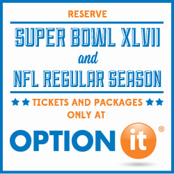 At Optionit.com you can reserve SuperBowl XLVII tickets and travel packages with all the convenience and flexibility any sports fan could need. By purchasing an option, you are guaranteed the opportunity to see the NFL’s best square off without any of the hassle associated with finding an affordable ticket. The option gives you an obligation- free reservation on premium game day and travel packages with the ability to resell your option at any time. Sounds pretty cool, right?